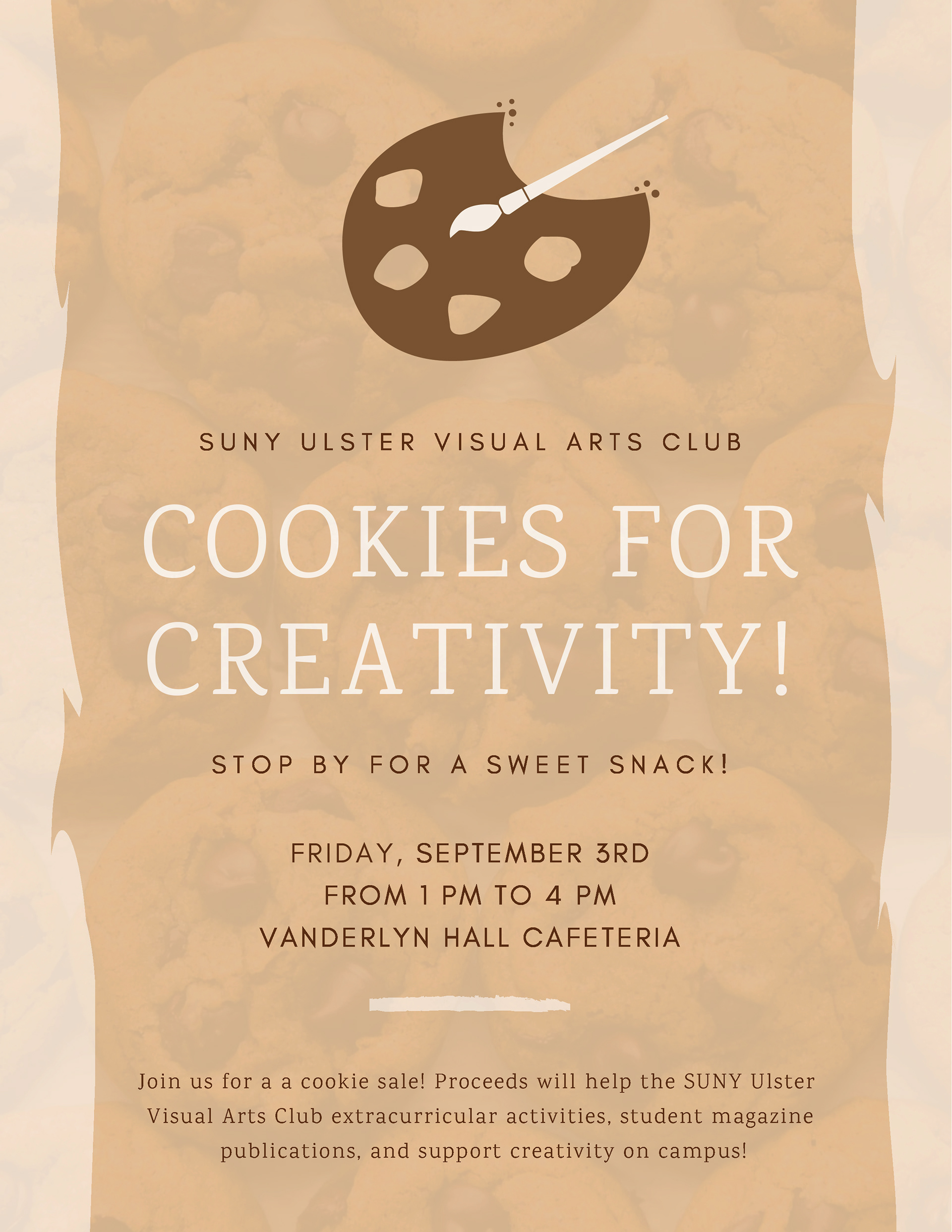 A flyer to promote a bake sale to benefit the SUNY Ulster Visual Arts Club on campus.