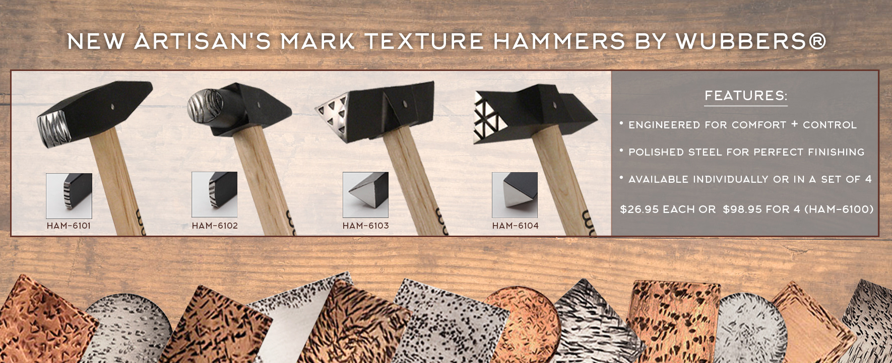 A website banner to promote a new line of hammers at my company. I used a neutral color scheme and layered images to create a unique visual effect. Minimal text is important as this ran on a timer, so it needed to catch the viewer's eye quickly.